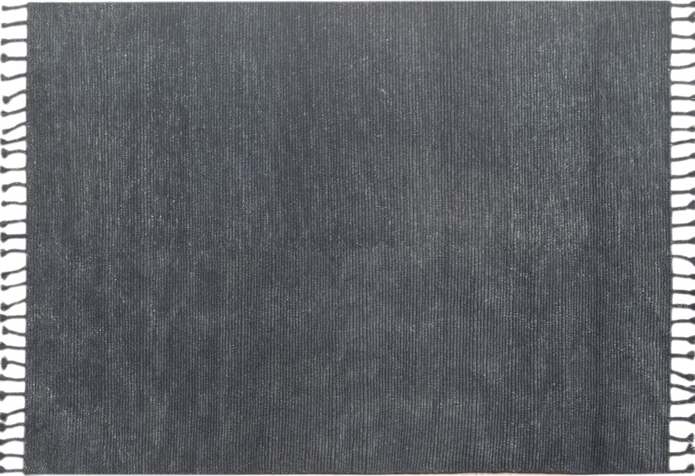 Håndknyttet og håndtuftet ullteppe med tykke frynser og ribbemønster i ullen over hele teppet. Enkel å ta vare på takket være den kortere teppehaugen, men fortsatt myk og behagelig for føttene.