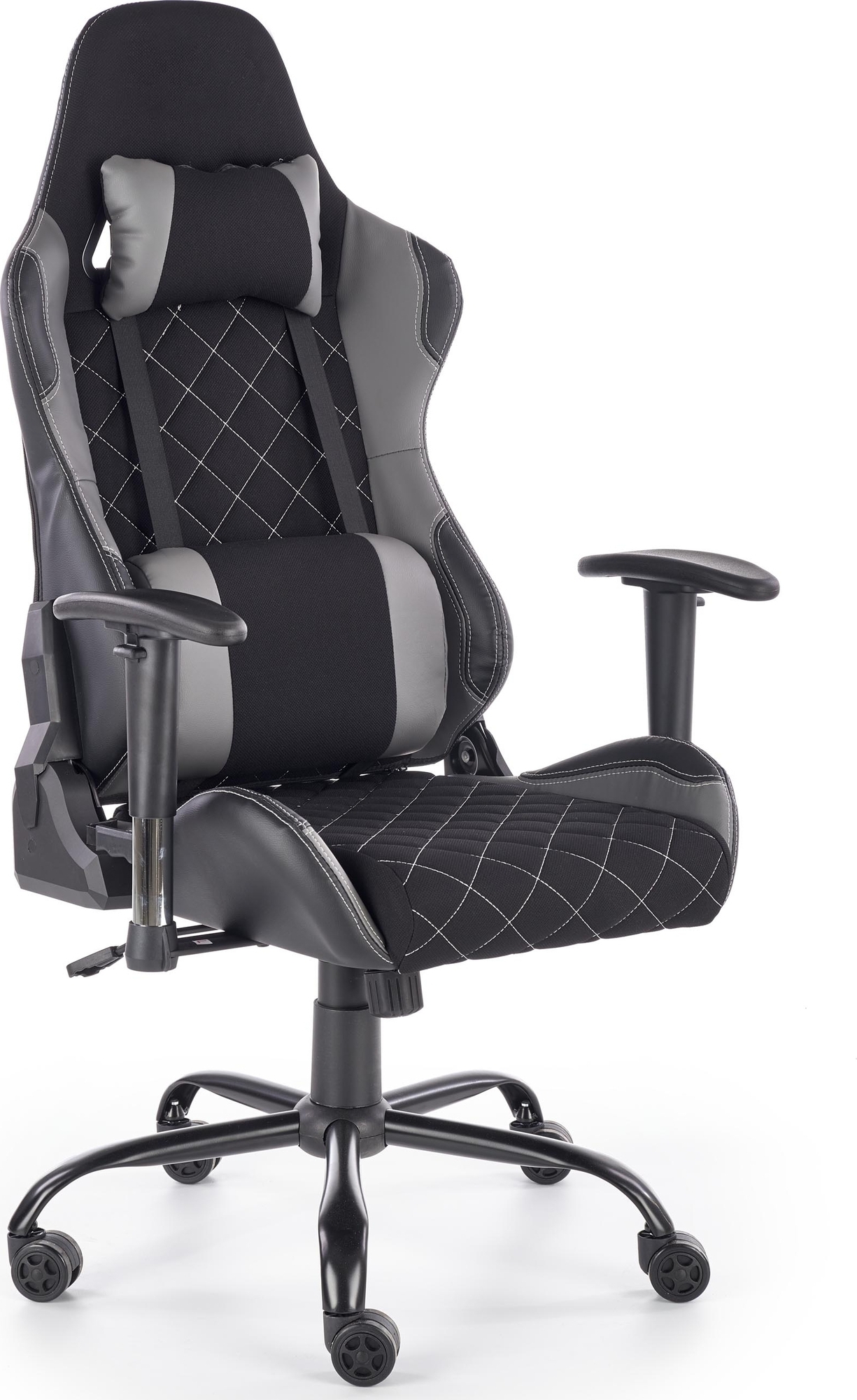 En fin kontorstol med moderne design. Stolen er kledd med behagelig kunstskinn og stoff for maksimal komfort. Setet kan heves og senkes med hjelp av spaken under setet og stolen. Den er lett å forflytte takket være hjulene på stjernefoten.