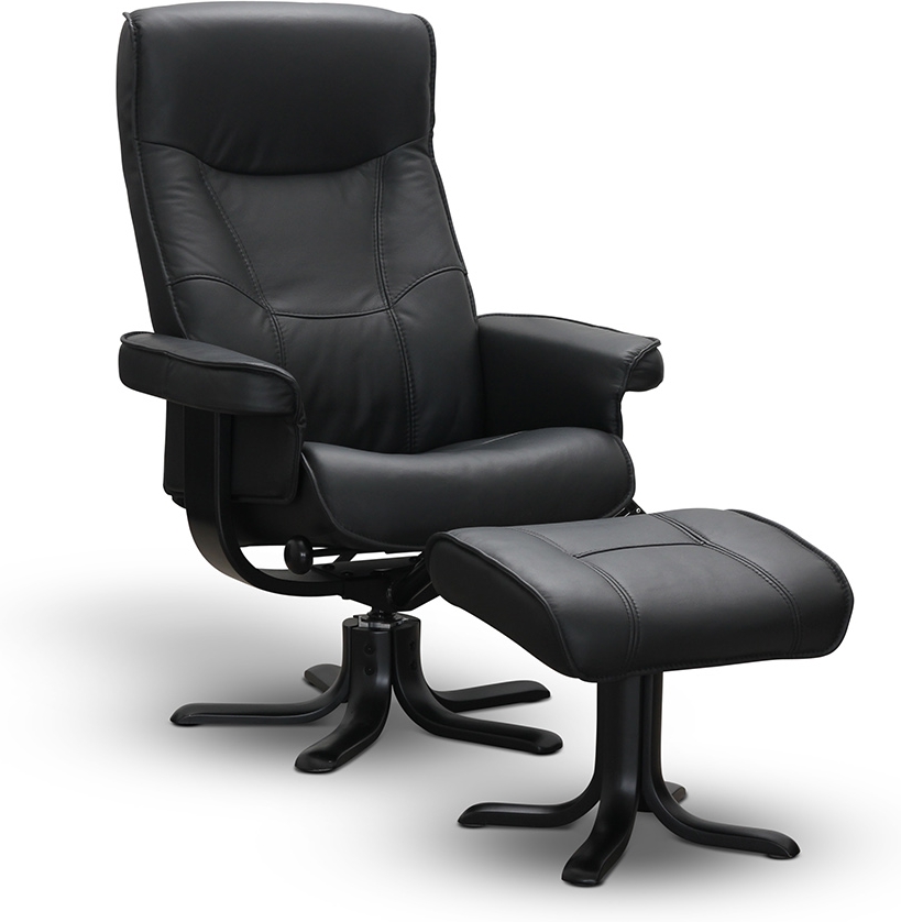 Bonn dreibar lenestol med fotskammel - Sort skinn/PU