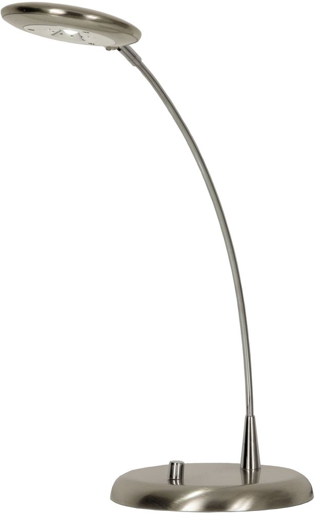 Bordlampe i metall i stål- og kromutførelse. Strømbryter på lampefoten.