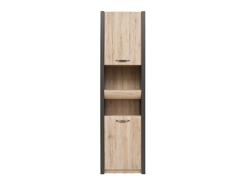En fin imitert bokhylle med grafittgrå sider. Med det åpne rommet i midten har du rask tilgang til hverdagstingene dine, inne i skapene er det funksjonelle hyller som hjelper til med å holde orden og orden! Bokhyllen kan med fordel kombineres med andre møbler fra samme møbelserie for å få den ultimate oppbevaringen på for eksempel kontoret ditt.