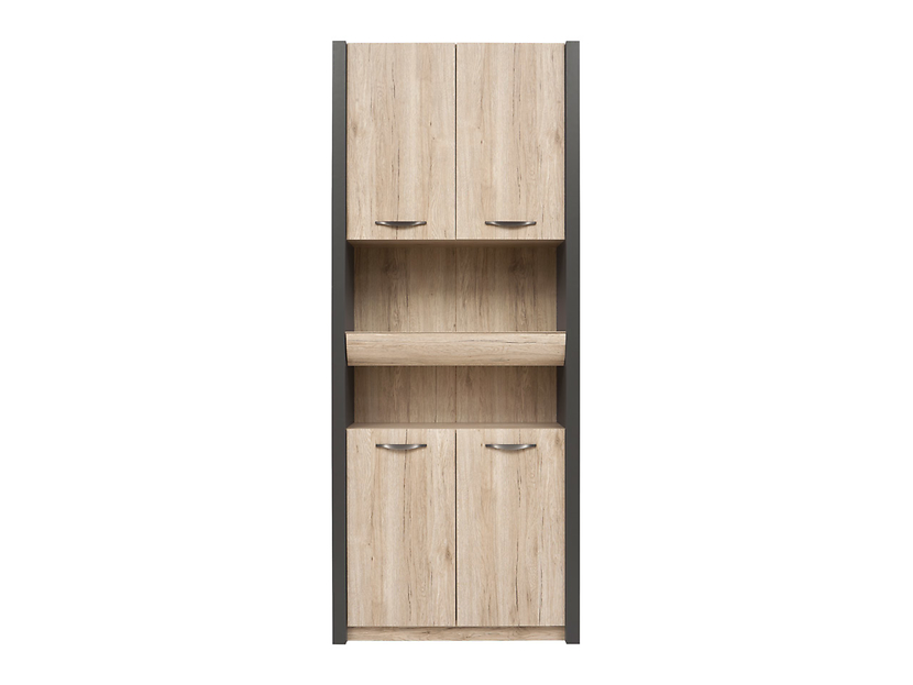 En fin imitert bokhylle med grafittgrå sider. Med de åpne rommene i midten har du rask tilgang til hverdagstingene dine, inne i skapene er det funksjonelle hyller som hjelper til med å holde orden og orden! Bokhyllen kan med fordel kombineres med andre møbler fra samme møbelserie for å få den ultimate oppbevaringen på for eksempel kontoret ditt.
