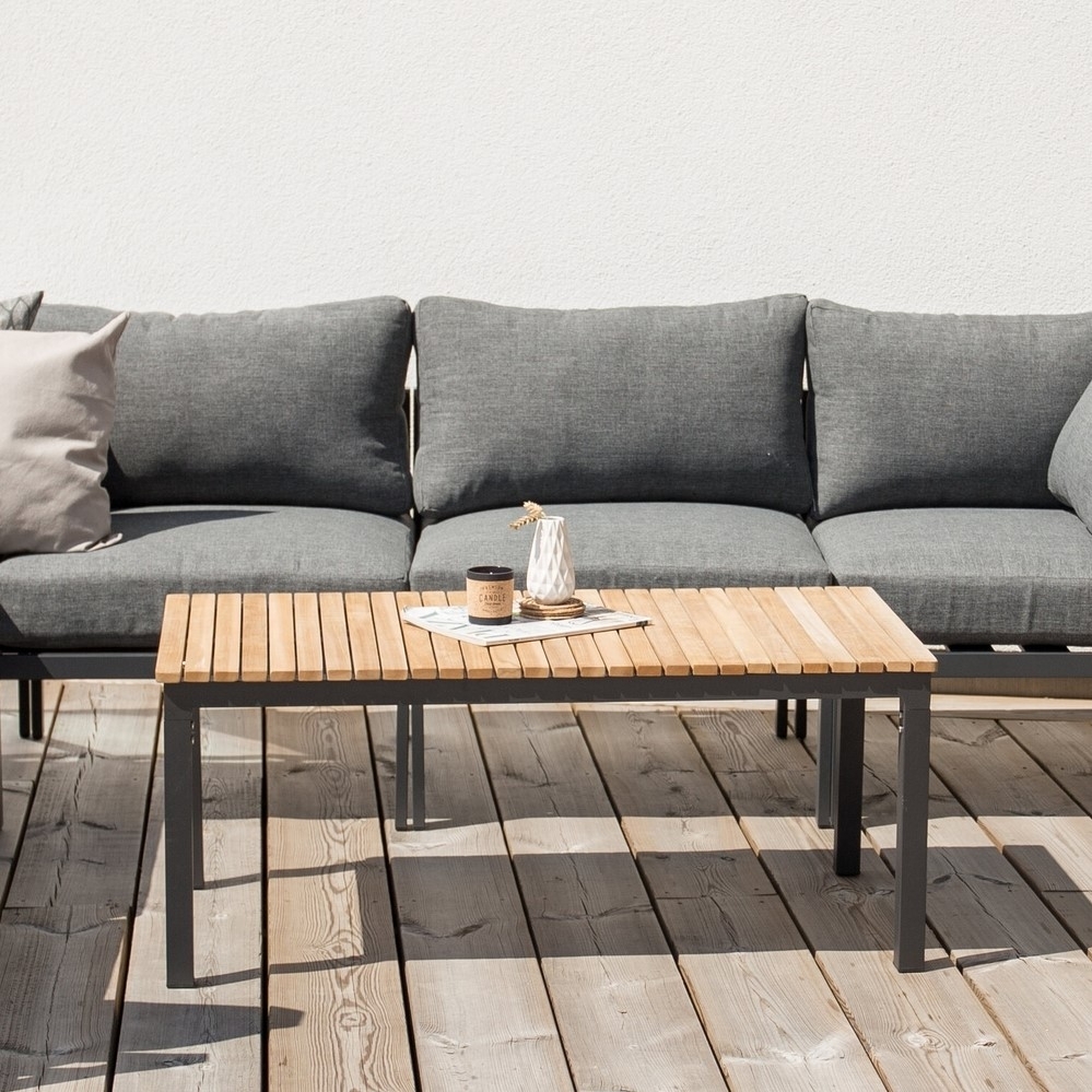 Skap den perfekte utendørsoasen med vårt elegante Brasillia salongbord! Med sine imponerende dimensjoner på 60 x 110 x 45 cm er dette salongbordet det ultimate tillegget til din utendørs sofagruppe og gir deg en overflate å både nyte og nyte. Brasillia sofabordet er laget av aluminium og teak, noe som garanterer både holdbarhet og en tidløs estetikk. Aluminium gir bordet en lett og rustbestandig struktur som tåler alle værforhold, mens den naturlige skjønnheten og varmen til teak gir utemiljøet ditt et snev av eleganse. Dette salongbordet er mer enn bare en praktisk overflate å sette ting på - det er et kunstverk i seg selv. Det moderne designet kombinert med valg av materialer skaper en harmonisk og stilig atmosfære. Nyt avslappende stunder med familie og venner i hagen eller på terrassen med Brasillia-salongbordet. Skjem bort deg selv og ta utendørsinnredningen din til neste nivå med Brasillia salongbord. Skap minneverdige øyeblikk utendørs med dette praktiske, men likevel vakre møbelet. Gjør uterommet ditt til et sted hvor du nyter og slapper av med stil!