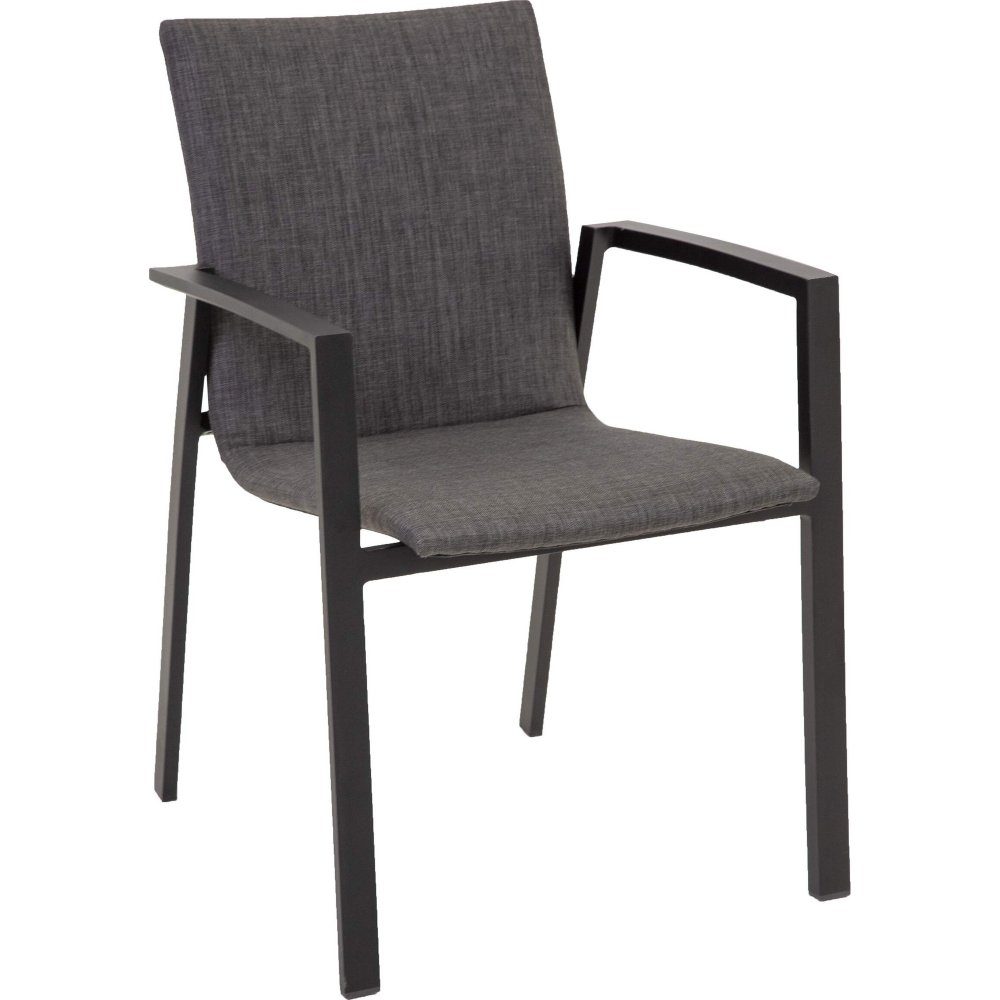 Utespisestol laget av aluminium. Trukket med olefin og tekstil.