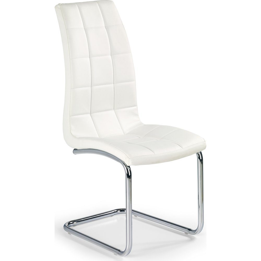En flott spisestol med et moderne design. Underdelen er laget i forkrommet metall og setet er trukket i svært behagelig kunstskinn for maksimal komfort.