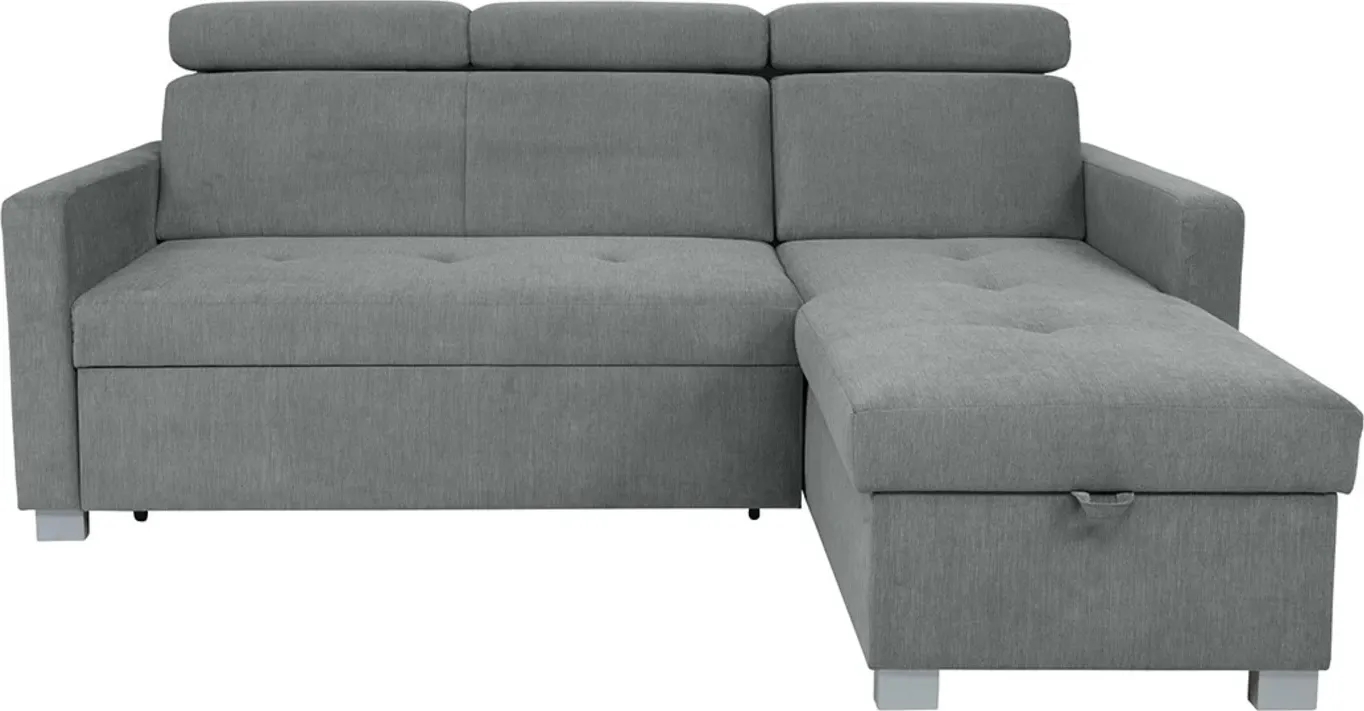 Divansofa med sengefunksjon, oppbevaringsplass og justerbare nakkestøtter. Plasseringen av divanen velges under montering.