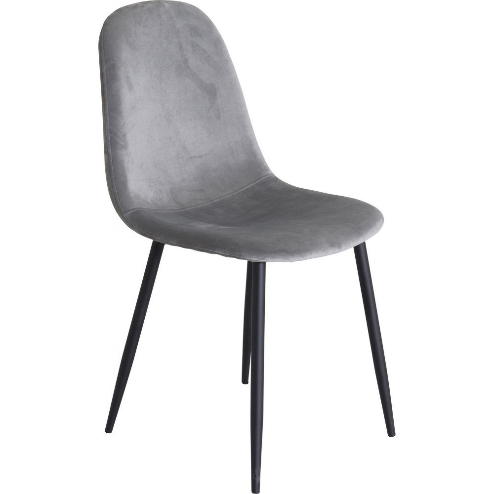 Spisestol laget av metall og tre, trukket med polyesterstoff.