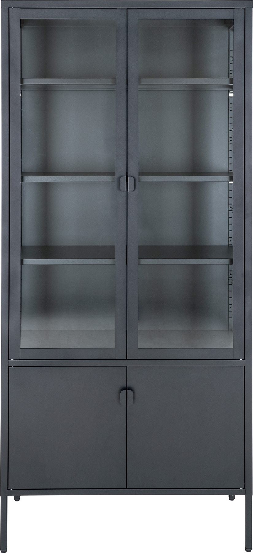 Vitrineskap i stål med glassdører.