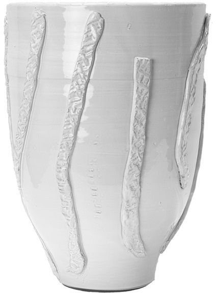 Vase av hvit terrakotta med et harmonisk mønster.
