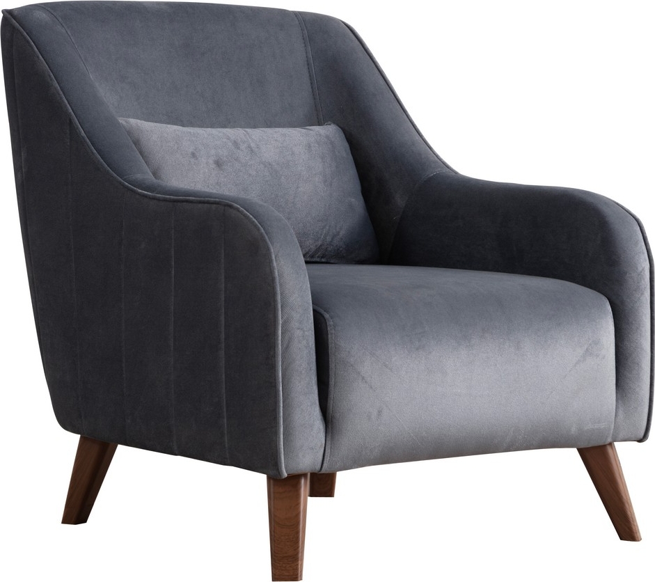 Sofa laget av bøk og sponplater med polyestertrekk. Faste sitteputer og bærbare ryggputer. Stoffet kan renses.