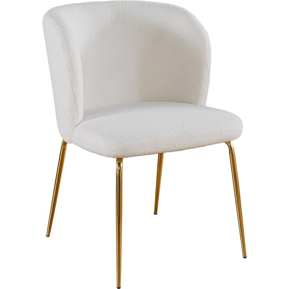 Spisestol med trekk i bouclestoff. Base i messingdesign.