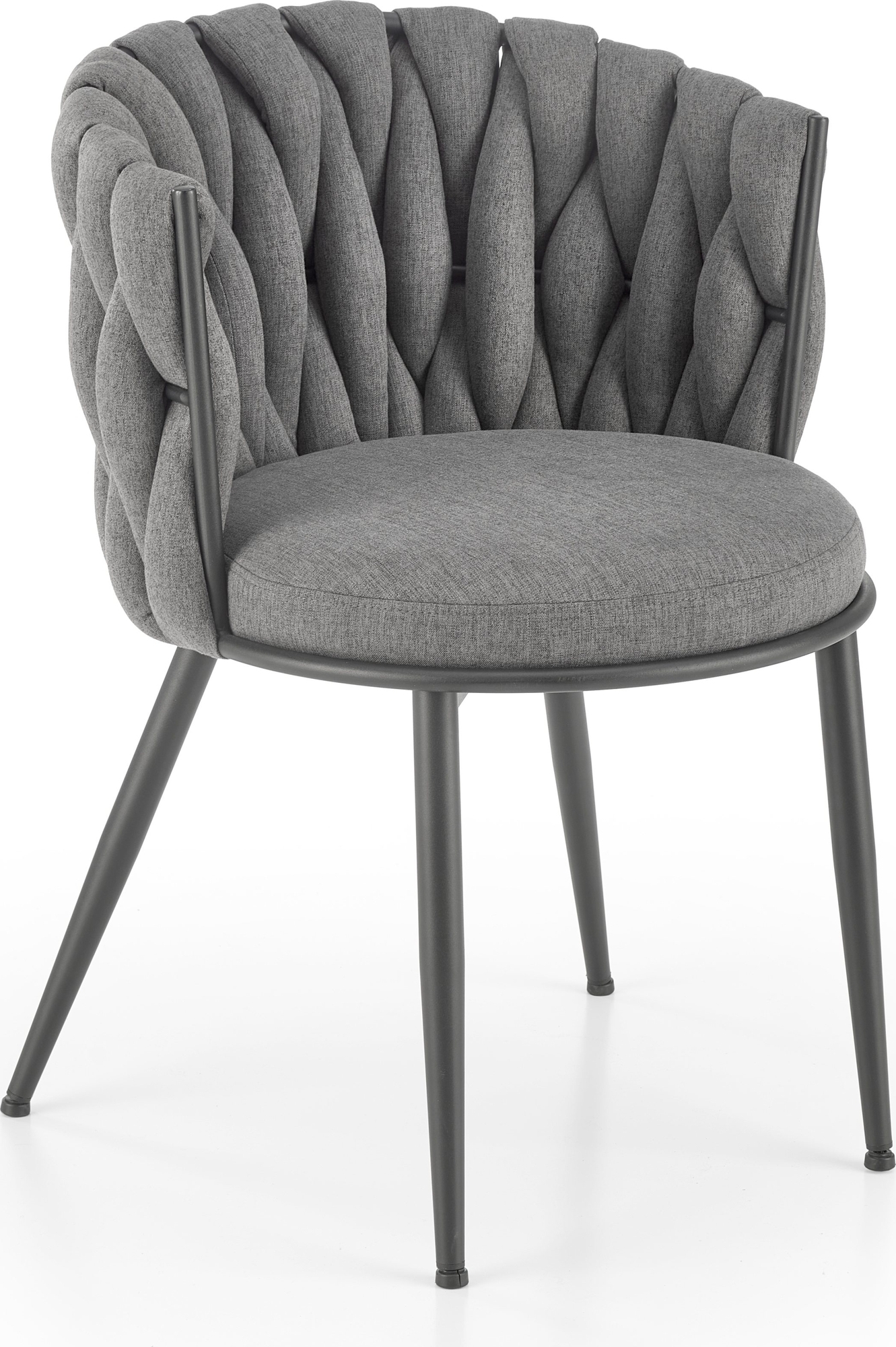 Spisestol med pulverlakkert stålunderstell og stofftrekk.