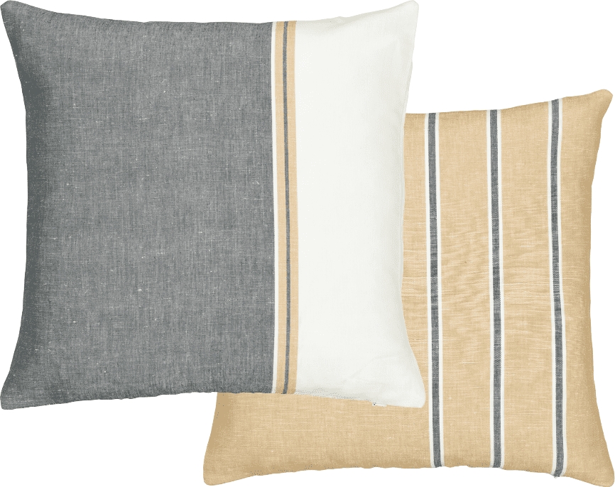 2-paks putevar med garnfargede striper i halvlinkvalitet. Glidelås nederst. Mål 45x45cm. Innerpute kjøpes separat. For en godt fylt look, kjøp gjerne en innerpute som er litt større, ca 50x50cm.