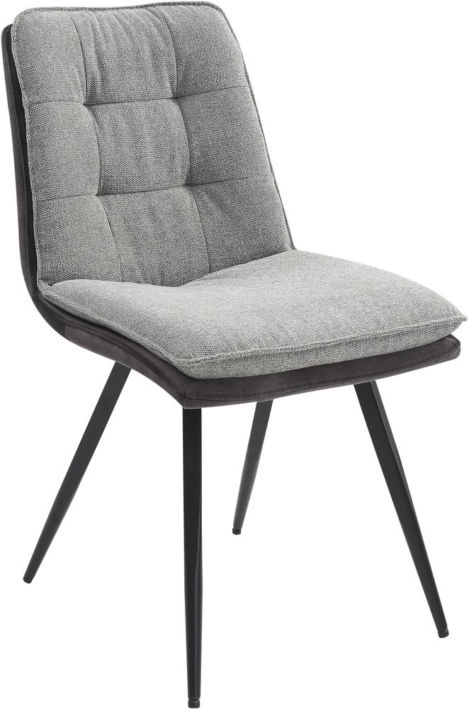 Callisto stol med ordentligt stoppet sete- og rygg for god sittekomfort. Stoff i grått med svartlakkerte metallben.