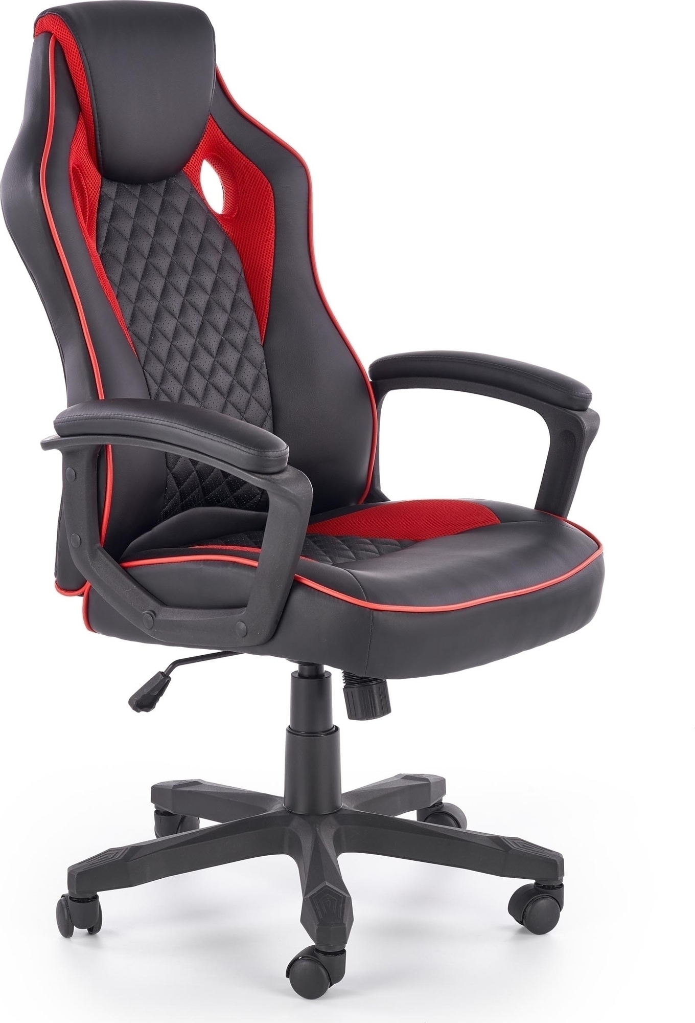En fin gamingstol med en moderne design. Stolen er kledd med et veldig behagelig kunstskinn for maksimal komfort. Setet er lett justerbart ved hjelp av spaken under setet og stolen er lett forflytte takket vare hjulene på stjernefoten.