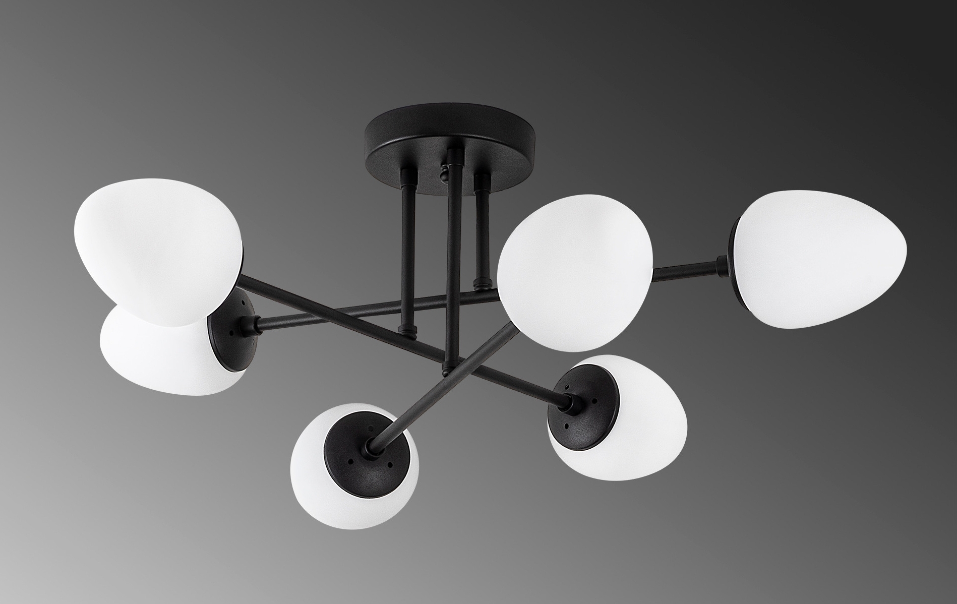 Taklampe laget av metall og glass. Lyskilde ikke inkludert.