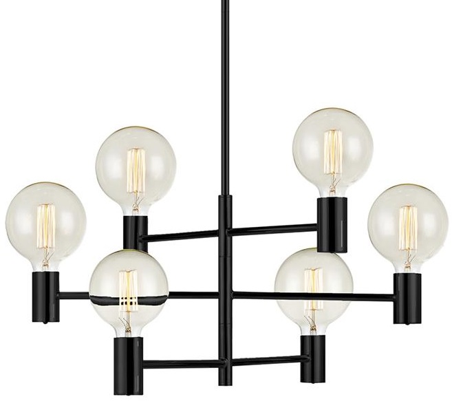 Nydelig taklampe med ett stilrent design. Laget i svart metall med hele 6 lampeholdere. Justerbar i høyden samt med vridbare armer. Minste totalhøyde er 77 cm og maks er 169 cm. Lampen monteres lett på plass og passer perfekt inn på flere ulike steder i hjemmet. Store (E27) lampeholdere for maks 60W glødepære eller tilsvarende styrke i halogen, lavenergi eller LED. Oppheng for takkrok. Takkontakt klasse 1 (Jordet) følger med.