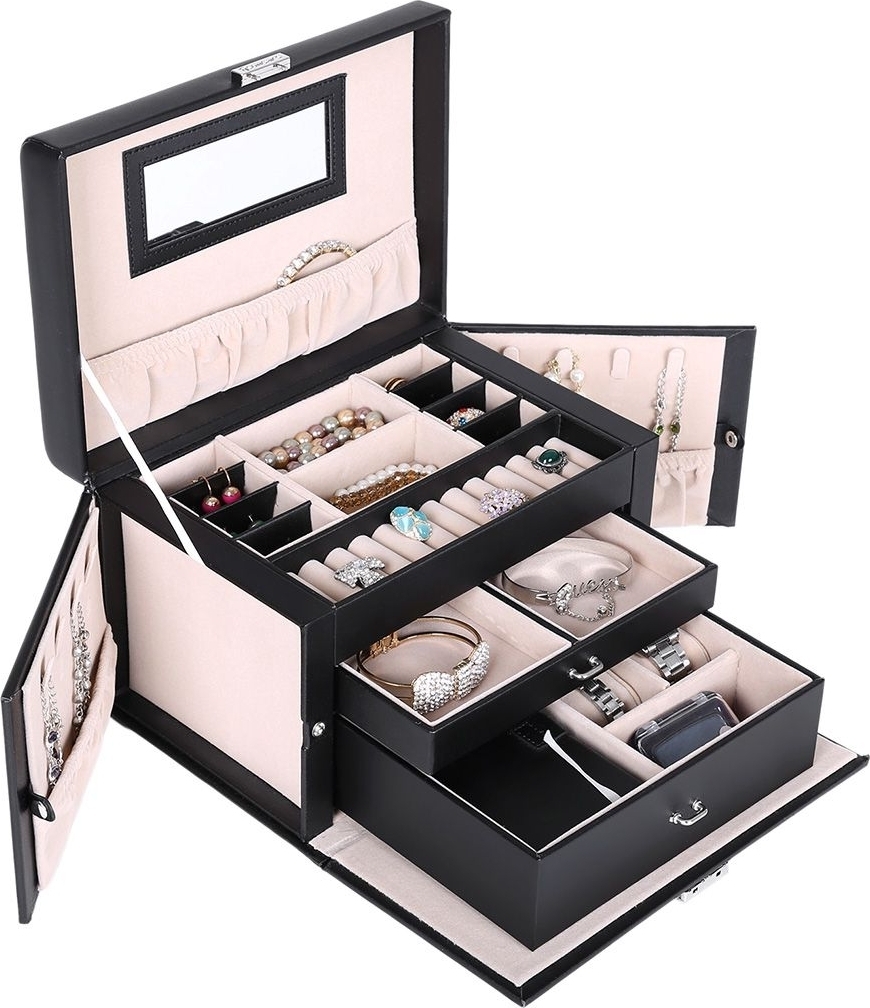 Smykkeskrin laget av MDF dekket med PU-skinn og foret med fløyel.