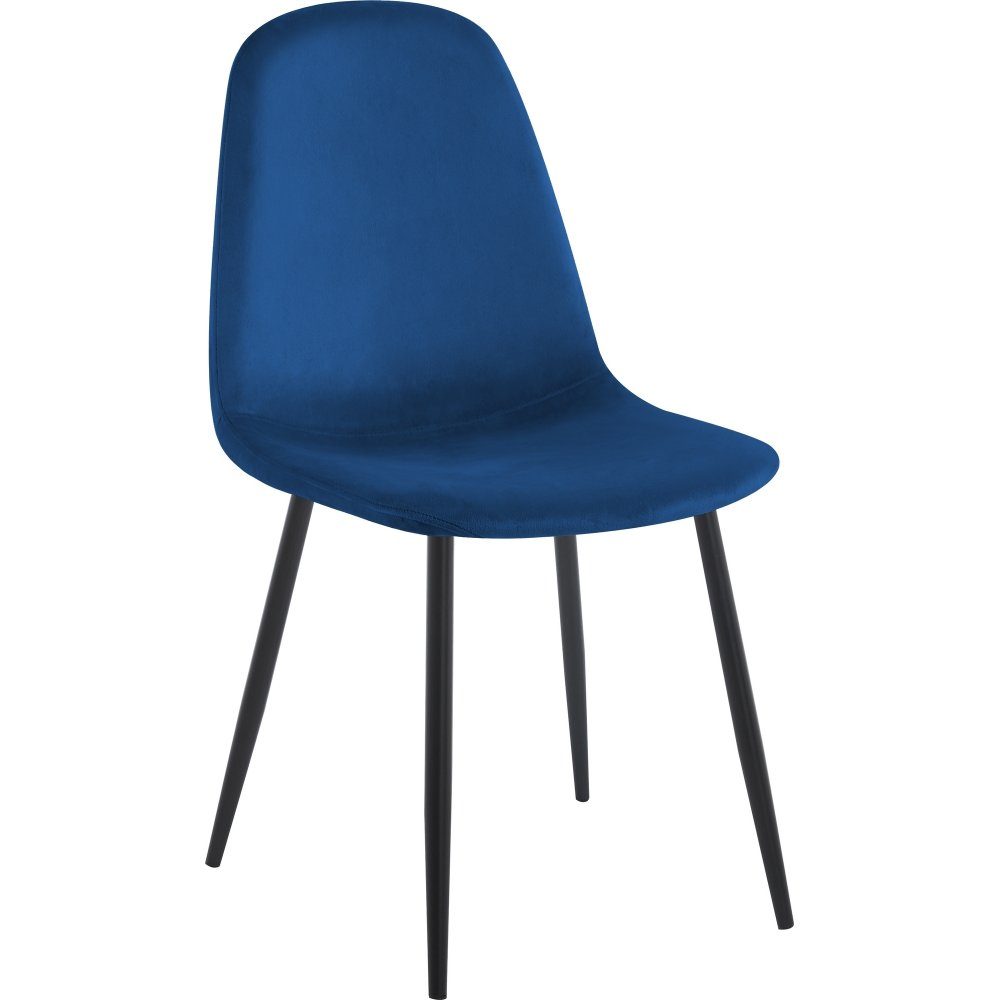 Carisma stol i elegant design med god sittekomfort. Trekk i blå luksuriøst fløyelsstoff med matchende smale svarte stålben.