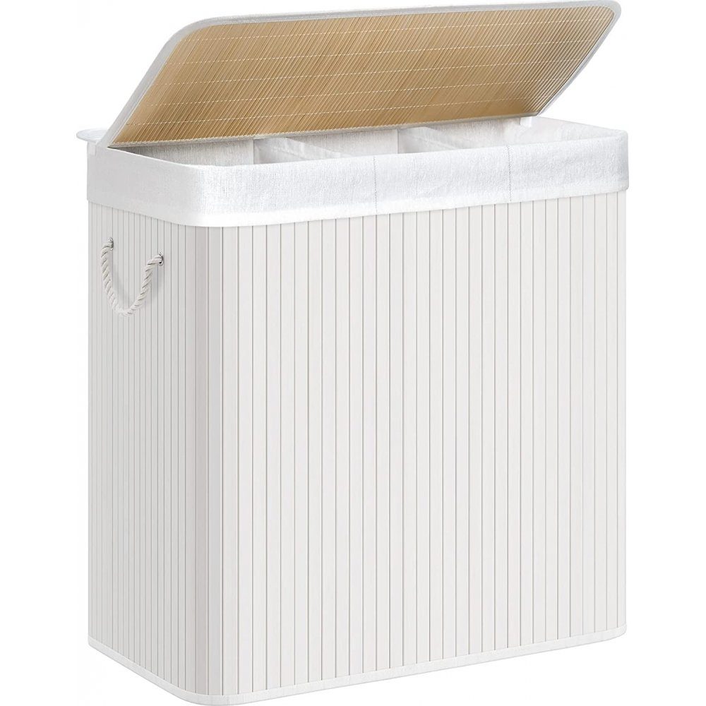 Skittentøyskurv i bambus, med avtagbar innerpose av bomull. Innerposen er delt inn i 3 seksjoner og rommer totalt 150 liter.