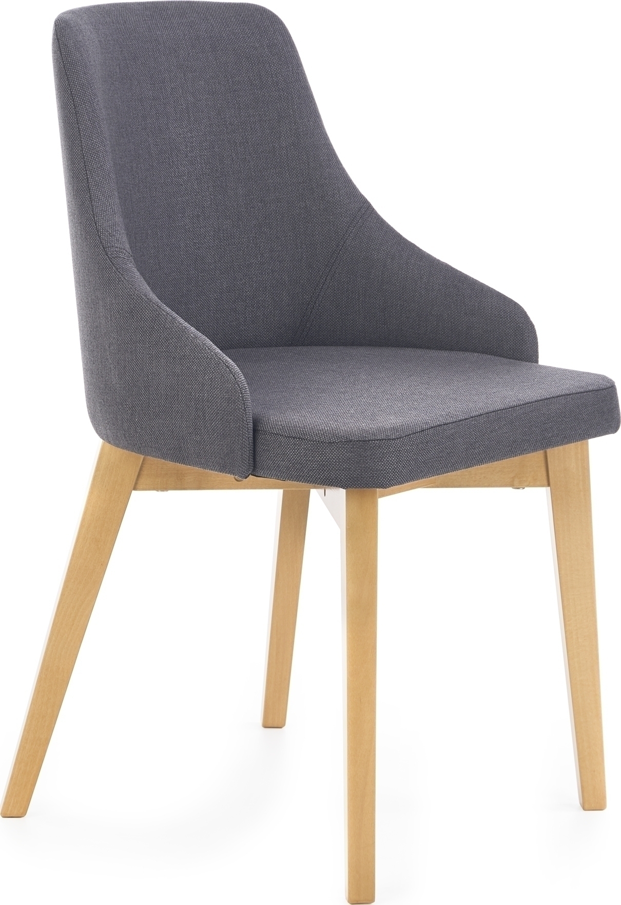 En pen spisestol med et stilrent design. Spisestolen er tilvirket av solid tre med den naturlige tre finishen på beina, og setene er trukket med et veldig behagelig tøystoff for maksimal komfort.