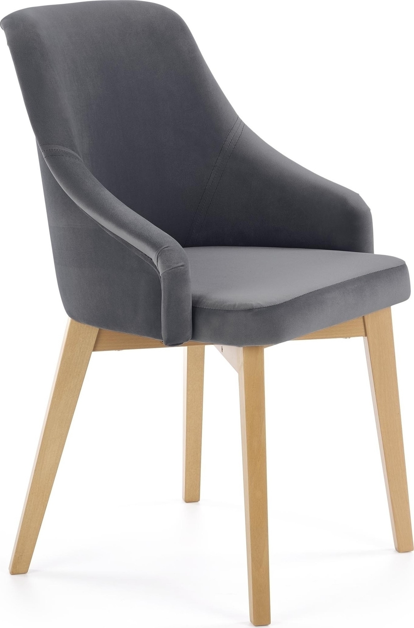 En pen spisestol med moderne design. Stolen er kledd med et veldig behagelig stoff for maksimal komfort og understellet er tilvirket av solid tre med dens naturlig tre finish.