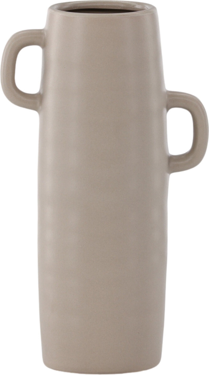 Cent er en sofistikert og moderne vase som vil fremheve innredningen din på en unik måte. Med en høyde på 22 centimeter er Cent laget av steintøy, noe som gir den et solid og elegant preg. Den varme lysebrune fargen gjør vasen til et allsidig stykke som passer perfekt i ethvert hjem og stil. Dens unike design inkluderer to håndtak på sidene, plassert i forskjellige høyder for å skape en kunstnerisk asymmetri. Disse håndtakene gjør det enkelt å flytte vasen og gir samtidig en interessant visuell dimensjon. Strukturen på vasen er lett bølget, noe som gir den et distinkt og moderne preg. Denne detaljen skaper et visuelt høydepunkt og gir vasen en unik karakter som vil tiltrekke seg oppmerksomhet. Enten du velger å plassere friske blomster, tørkede arrangementer eller bare la Cent stå alene, vil denne vasen være et imponerende tillegg til hjemmet ditt. Gi rommet ditt et snev av eleganse og modernitet med Cent - den perfekte måten å fremheve din personlige stil.