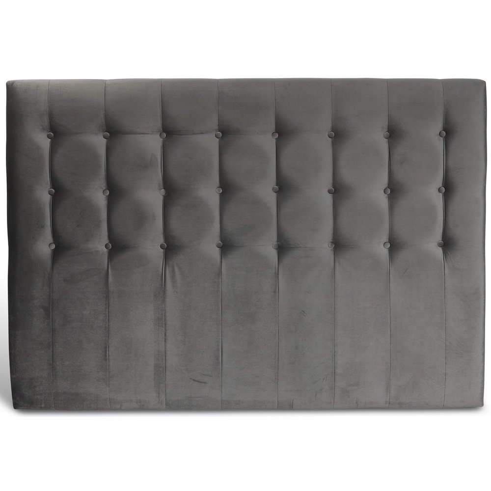 Senggavle Centa i et grått fløyelstoff med en myk følelse. Pen design med knapper for å gi et luksuriøst uttrykk på soverommet.