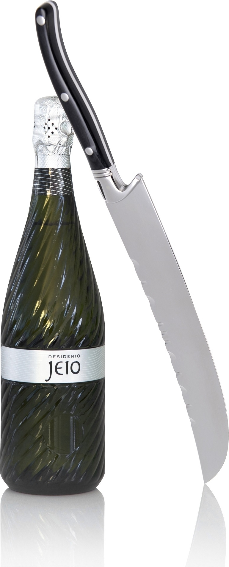 Sontell Champagnesabel i blankt stål med trehåndtak.