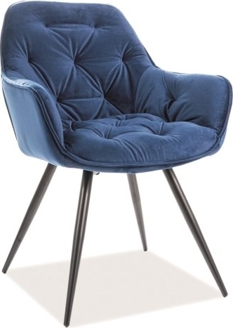 Stol i metall. Polstret med polyester i fløyelsimitasjon.