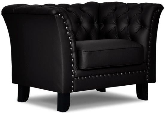 Chester bridge er en velbygd moderne chesterfield lenestol i svart slitesterk PU med skinnfølelse. Nagler som en stilig og eksklusiv detalj sammen med solide svarte treben. Kaldskum med polyetertopp i sittepute, som sikrer en behagelig og varig komfort.