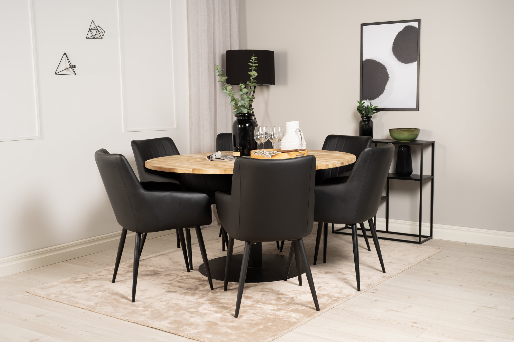 Cirebon spisestuesett med 6 komfortstoler - Sort/Naturlig