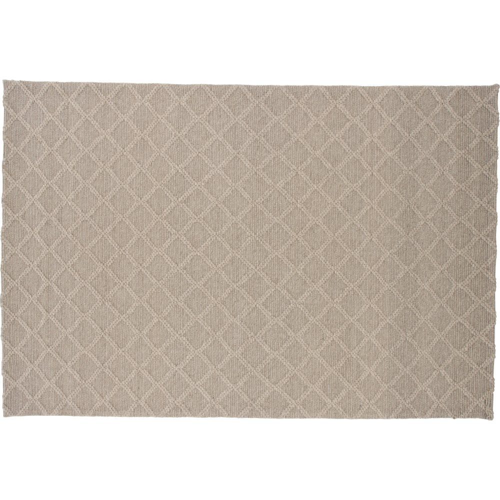 Ullteppe i et vakkert fargeskiftende mønster i beige fargetone. Håndvevd med en teknikk som gir teppet en nydelig knutestruktur i et lekkert rutemønster.