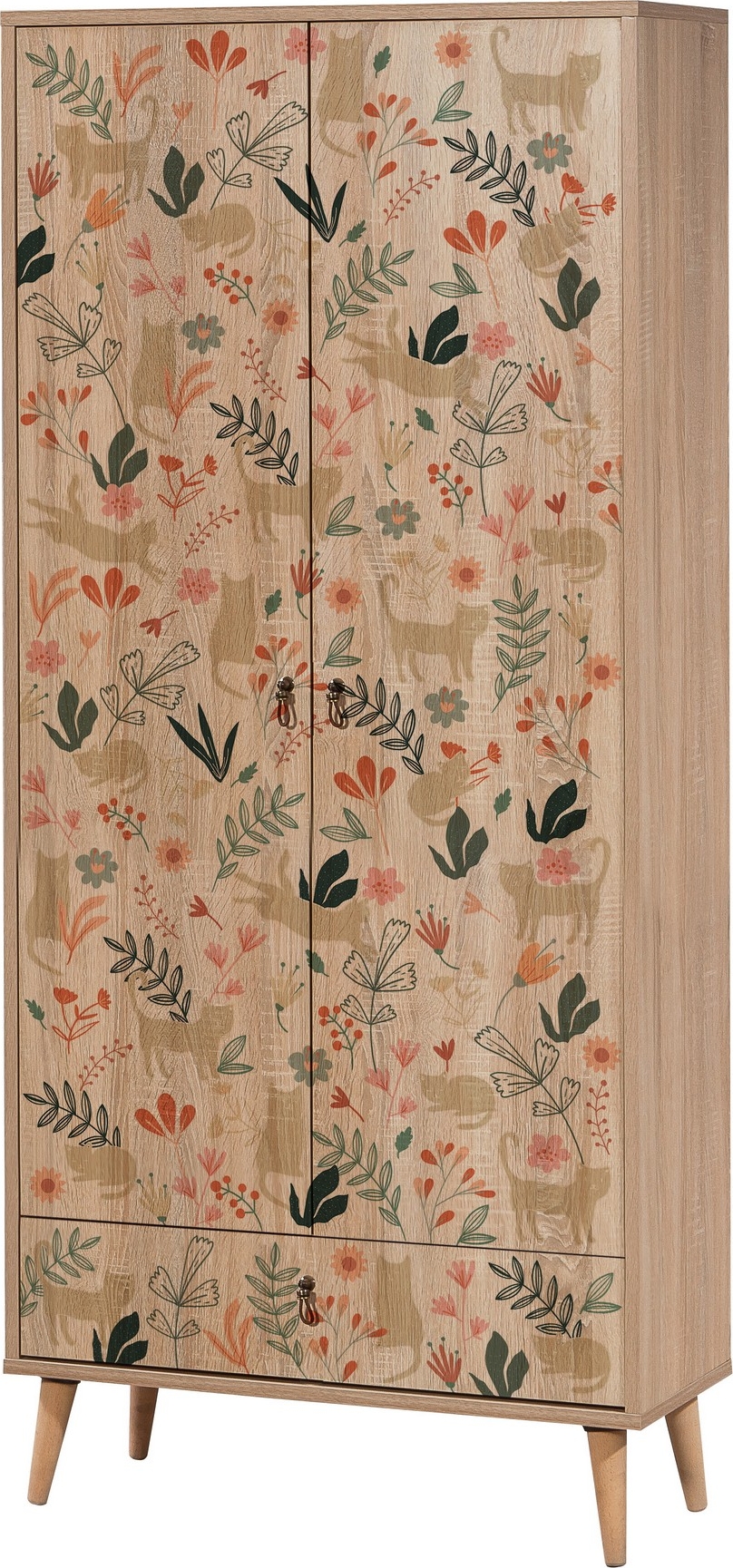 Sponplategarderobe med bein i heltre.