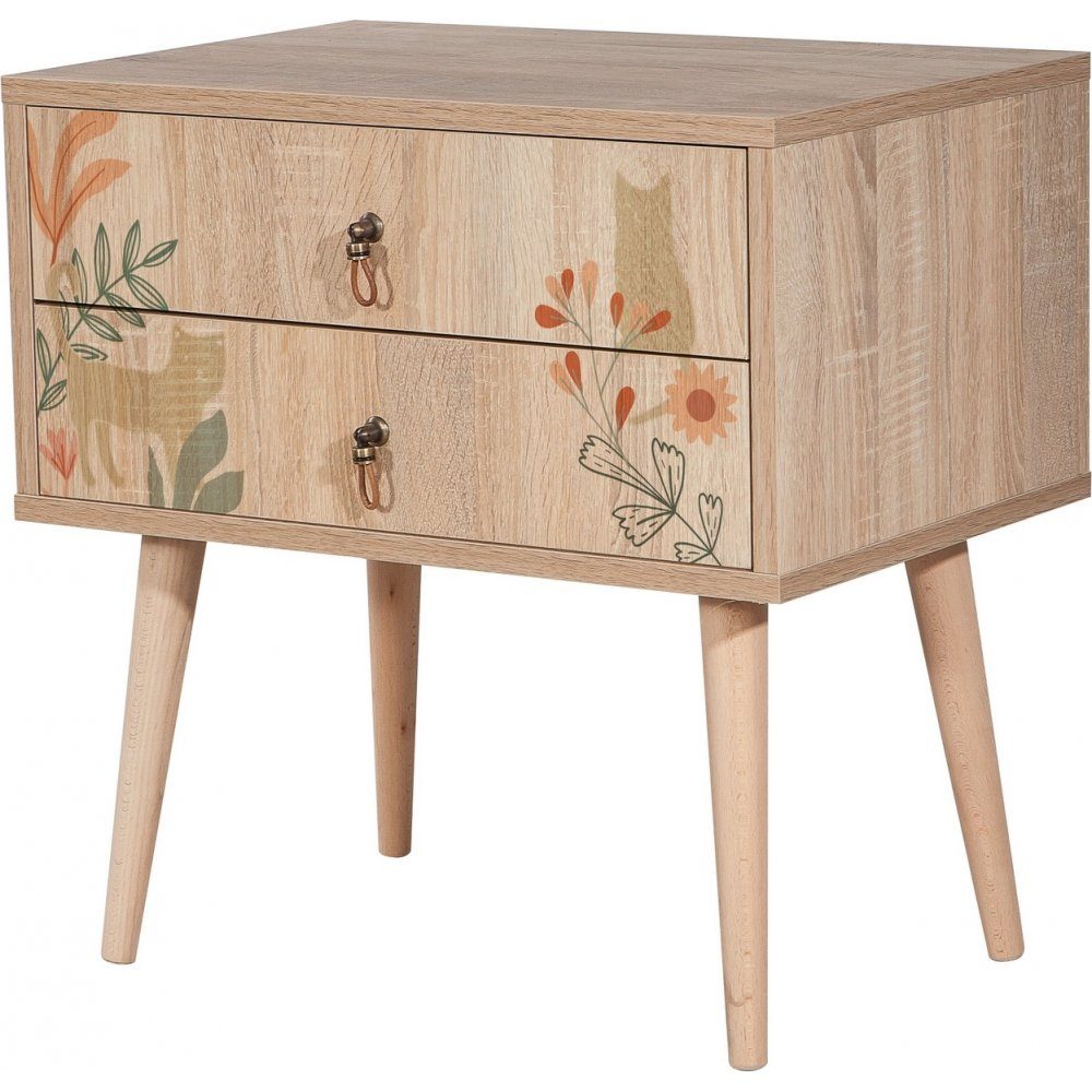 Nattbord av sponplater med ben i heltre.
