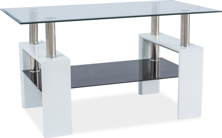 Salongbord i tre og metall. Bordplate av herdet glass.