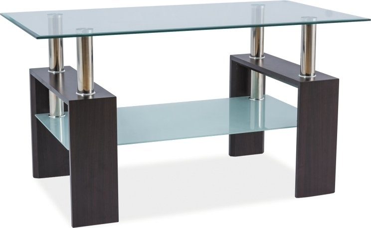Salongbord i metall og herdet glass.