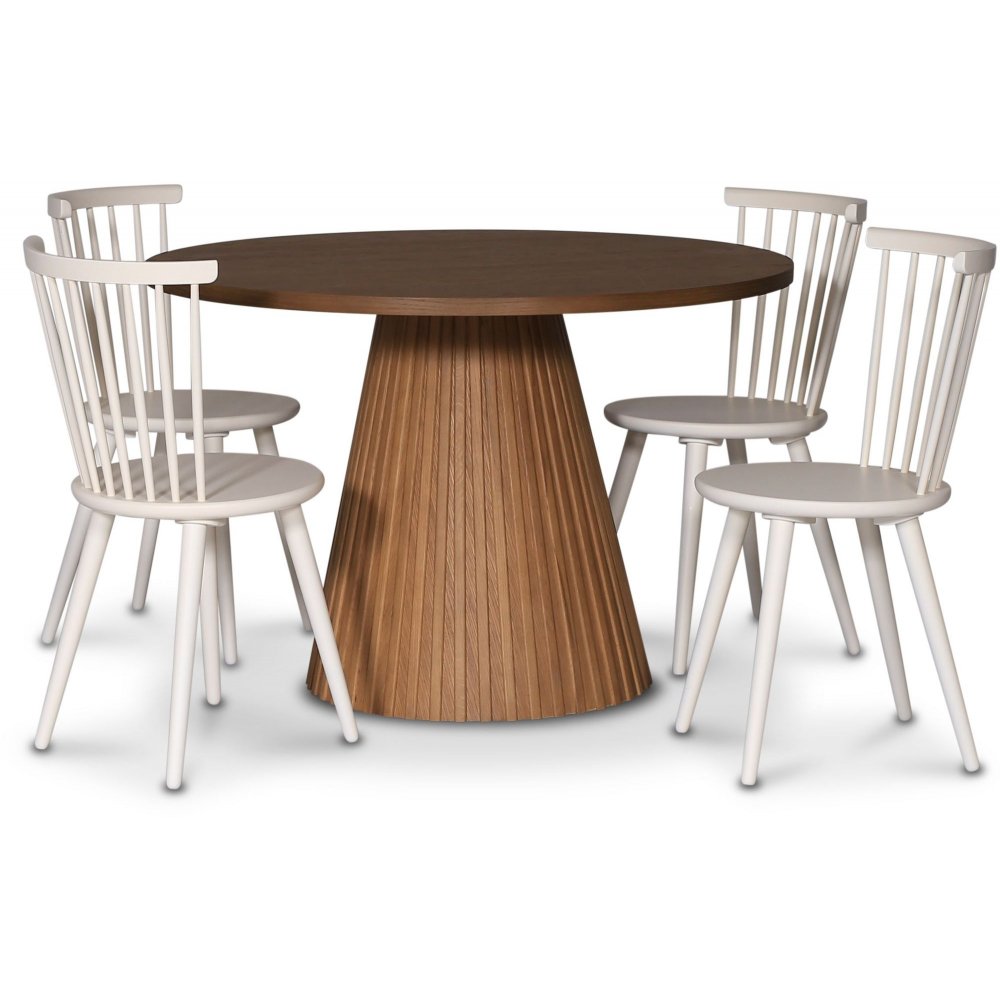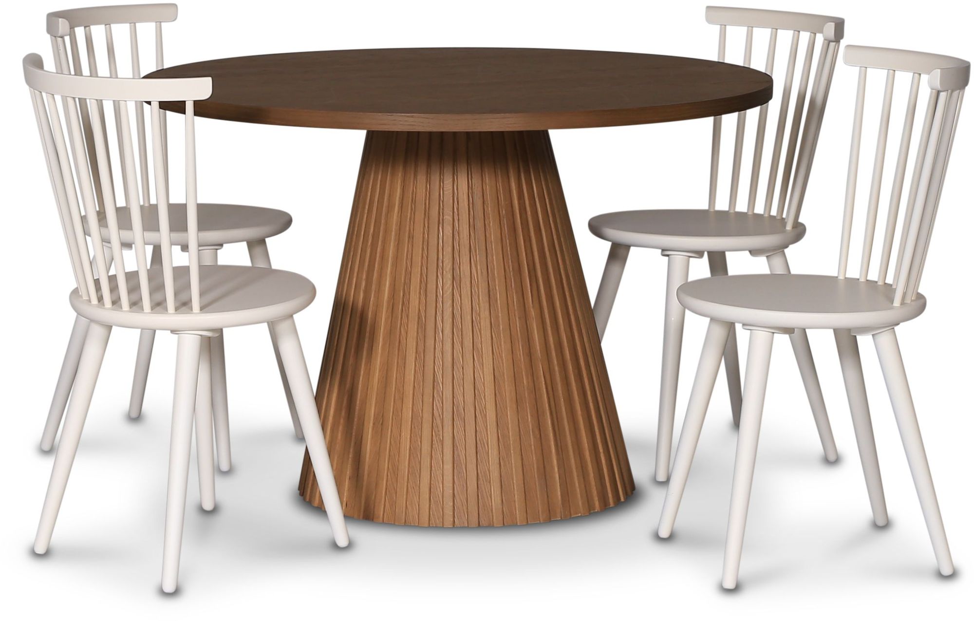 Cleo spisegruppe, rundt bord 110 cm, inkludert 4 stk. hvite Castor pinnestoler - mørk eikefiner