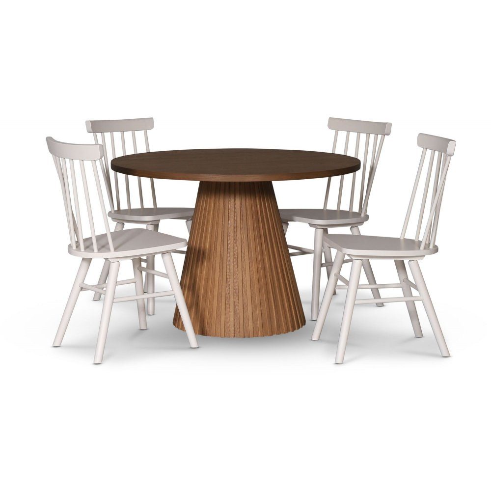 Cleo spisegruppe, rundt bord 110 cm, inkludert 4 stk. hvite Orust pinnestoler - mørk eikefiner