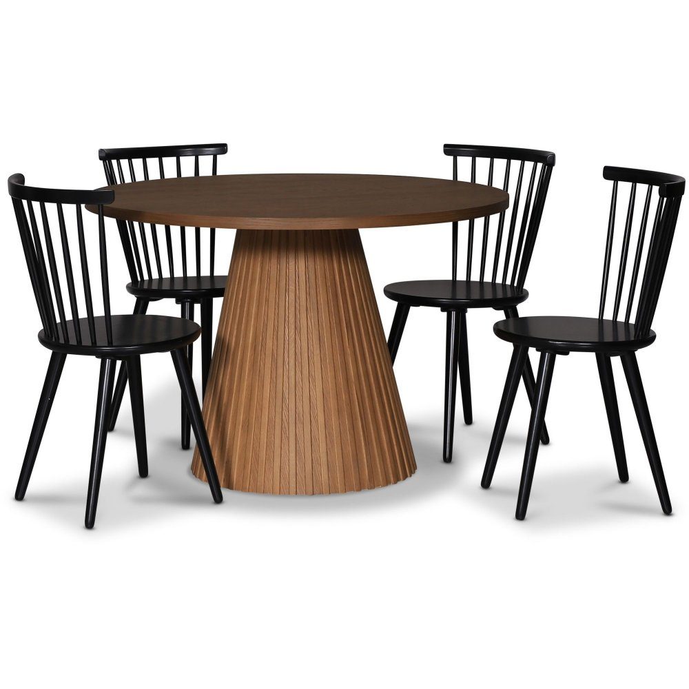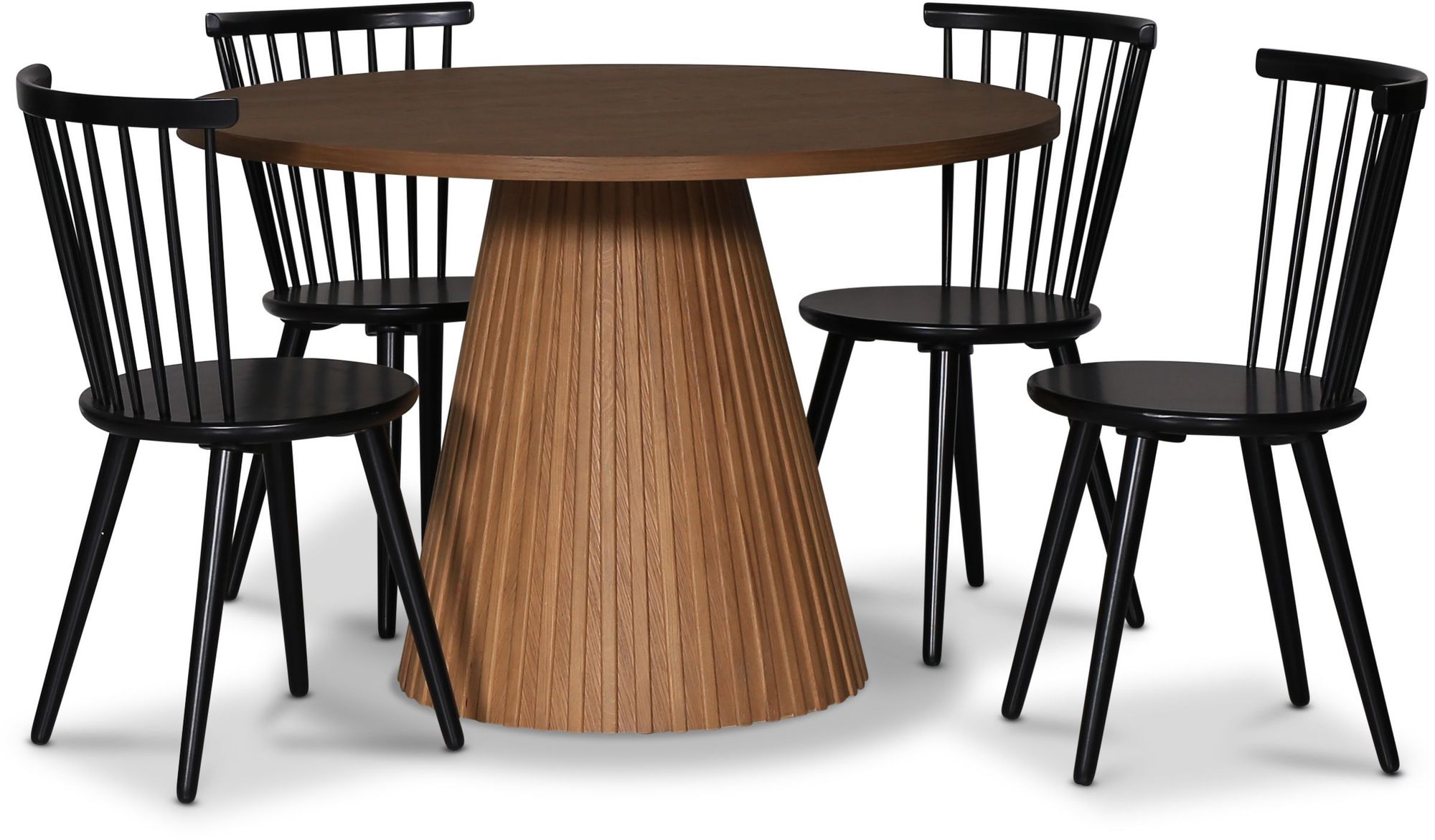 Cleo spisegruppe, rundt bord 110 cm, inkludert 4 stk. svarte Castor pinnestoler - Oljet eikefiner
