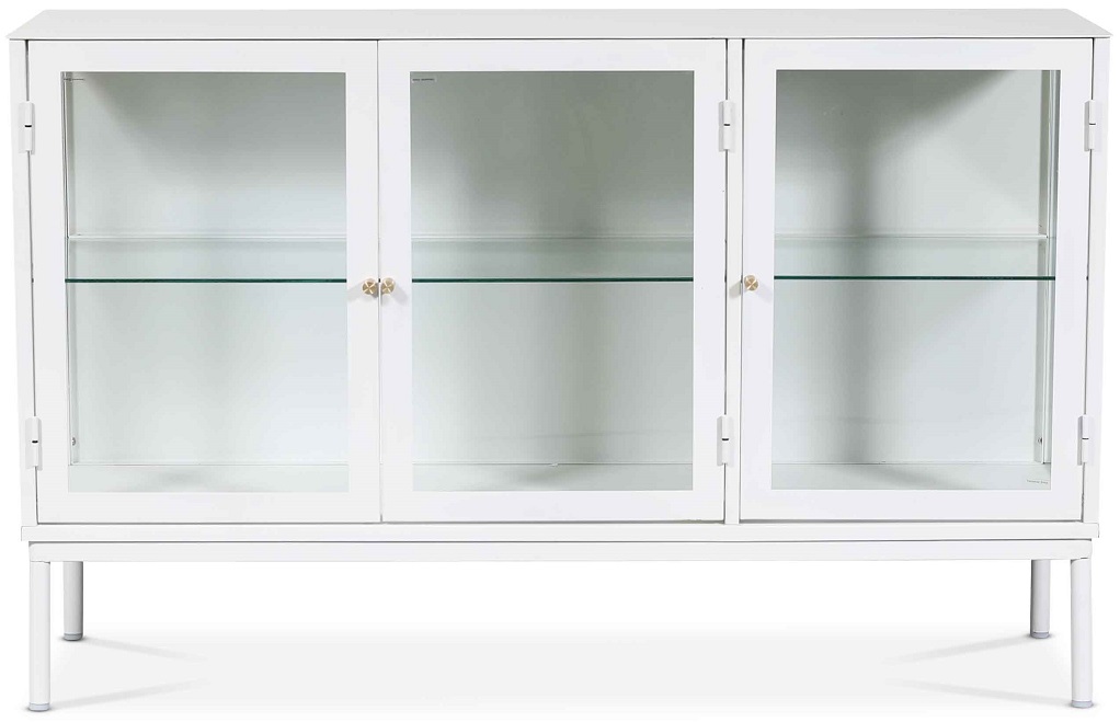 Cliff skjenk i metall med 3 dører - Hvit / Klarglas