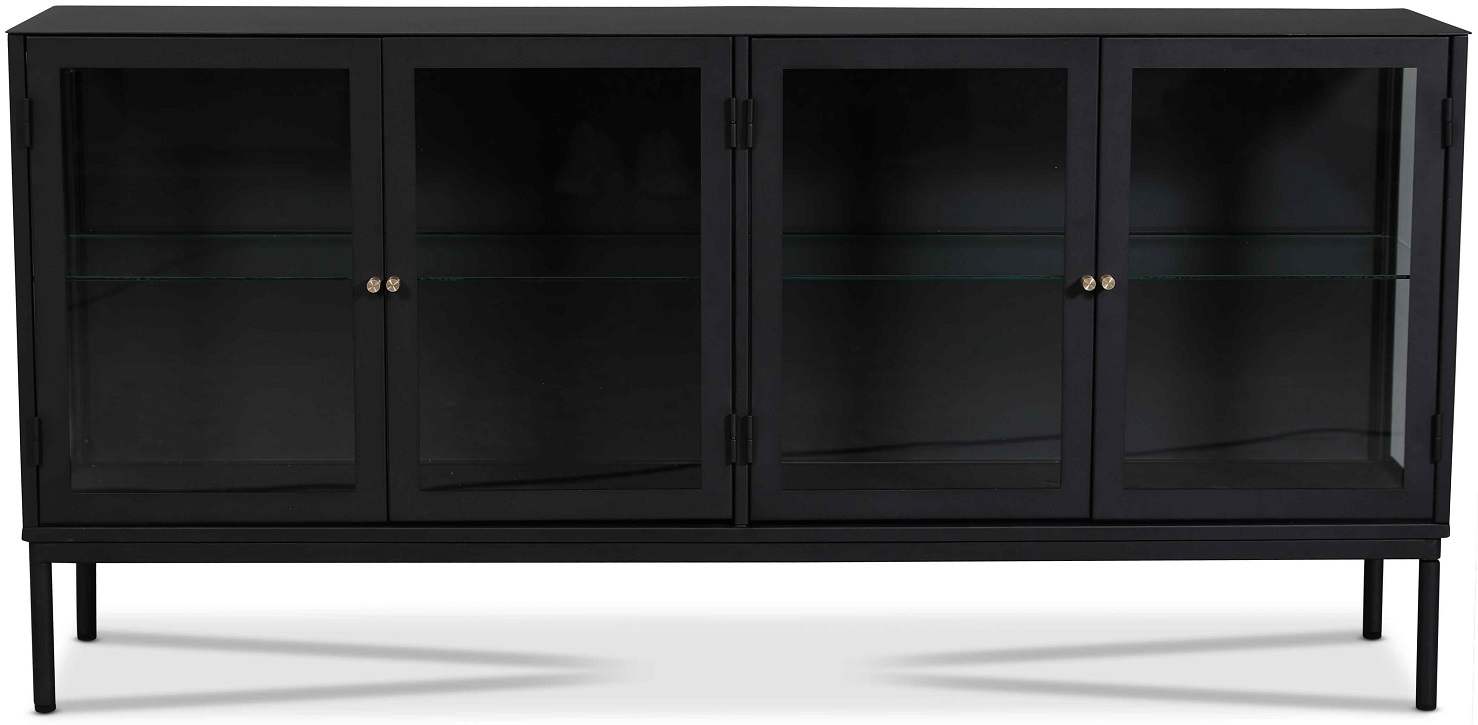 Cliff skjenk i metall med 4 dører - Svart / Klarglass