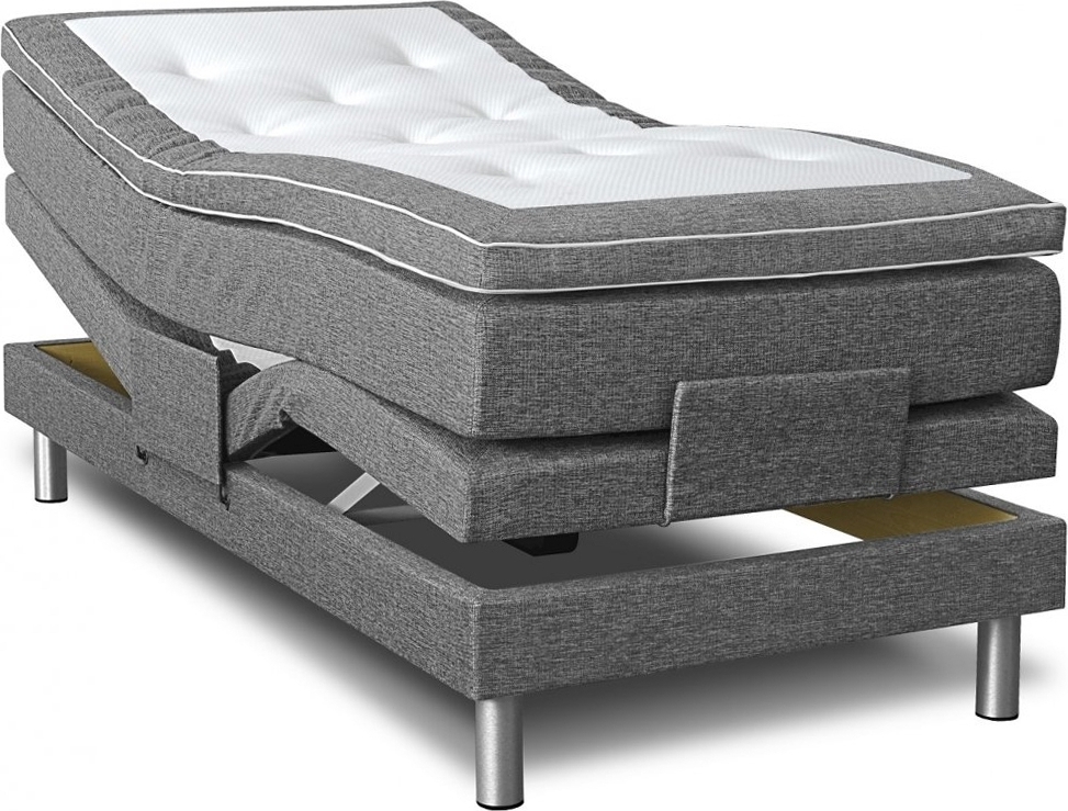 Cloud justerbar seng kommer med en 8 cm høy eksklusiv madrass. Sengen er kledd i et grått slitesterkt stoff (Rocco GRI281).