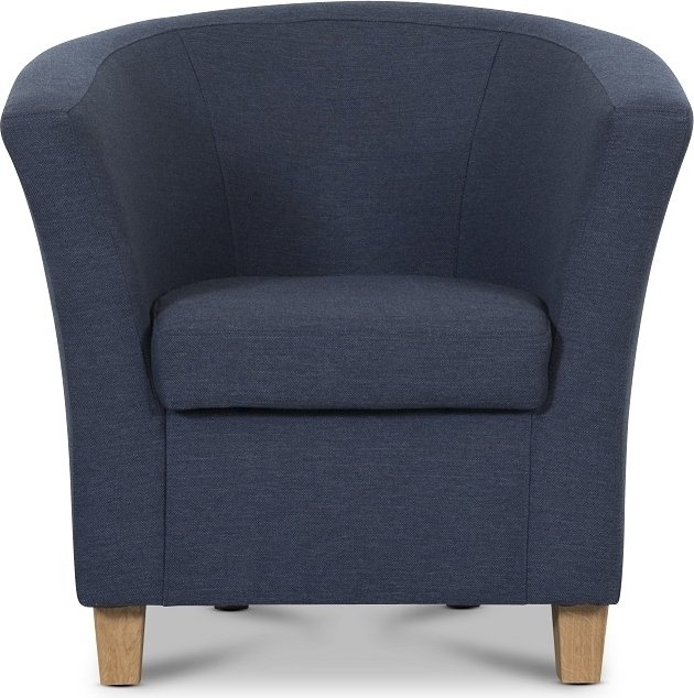 Klassisk klubblenestol med behagelig sittekomfort og velproporsjonerte mål. Ben i solide tre. Leveres i et slitesterkt blått stoff.