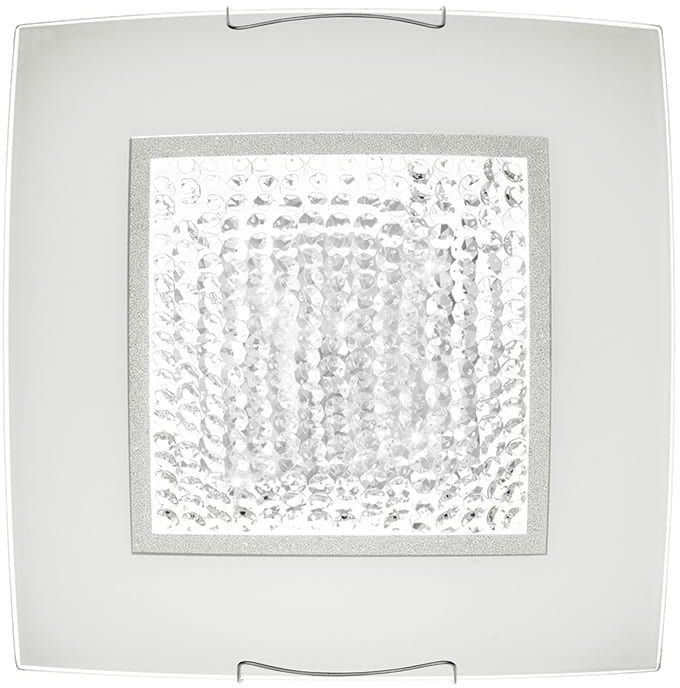 En luksuriøs himling med en elegant design. Tilvirket i mønstret og boblet glass og krystaller, samt detaljer i forkrommet metall.