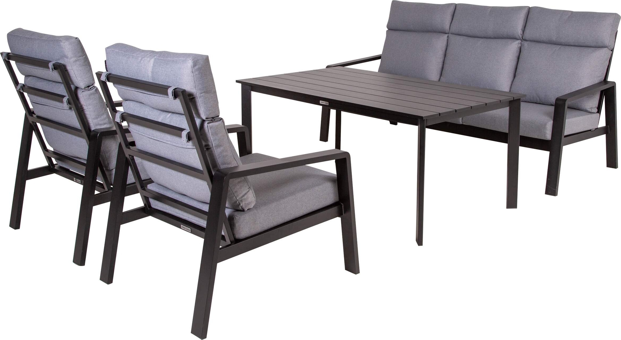 Utespisegruppe laget av aluminium. Trukket med polyester.