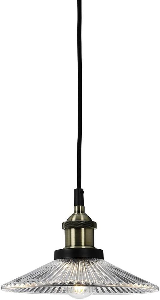 En pen vinduslampe med en stilren design. Sokkel i metall med antikk utførelse og skjerm i riflet klarglass.