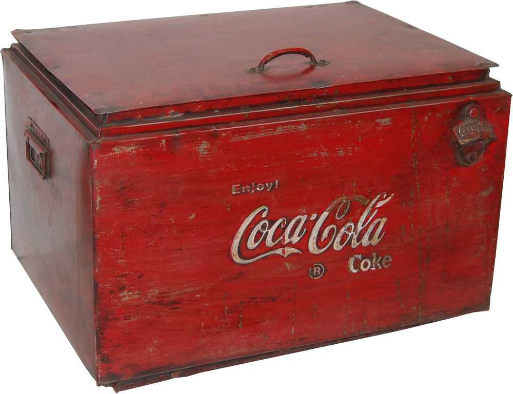 Retro oppbevaringsskuff i metall i Coca Colas farge og trykk. Rolig, praktiske og gir innredningen en følelse av vintage. Hver kiste er unik og kan derfor skille i finish og størrelse.