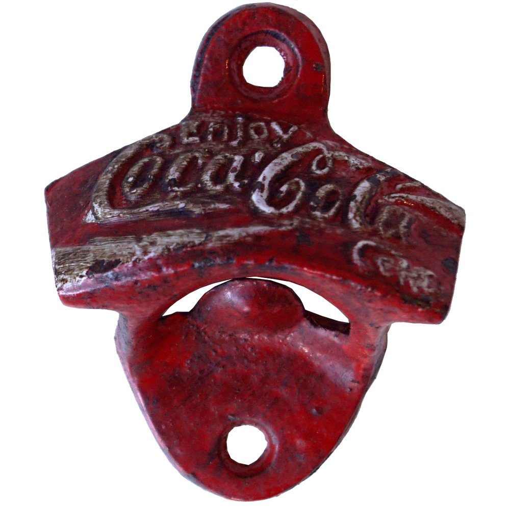 En metallhenger med Coca cola innstøpt i metall, hver henger er unik. Bruk som henger eller veggåpner for flasker.