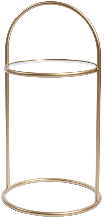 Et lettplassert lite bord som er inspirert av Art decostilen. Stativ i matt messingslakkert metall. Plate i temperert glass.